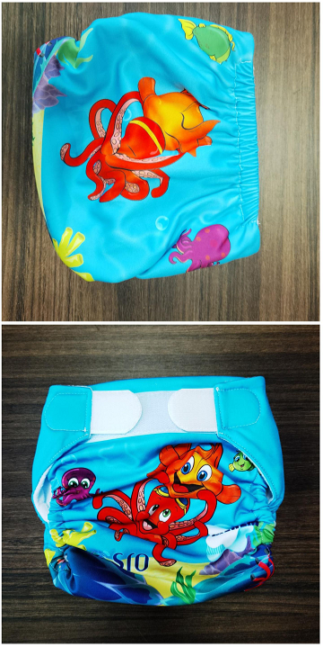 Sinds september 2022 dragen baby’s en peuters tijdens de IK ZWEM lessen een speciale zwemluier. Deze is van stof, is voorzien van een vrolijke print, is wasbaar én dus herbruikbaar.