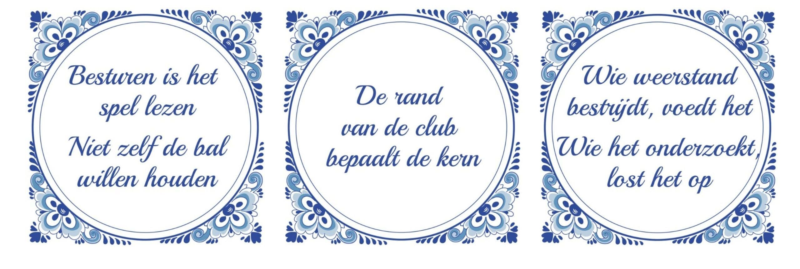 Op verzoek van de deelnemers werd deze laatste bijeenkomst nog eens ingezoomd op cultuurverandering binnen de vereniging en het in positie komen als bestuurder. Tenslotte vatten de bestuurders hun belangrijkste geleerde lessen en/of focus voor de toekomst samen in tegeltjeswijsheden. Wat wederom mooie inzichten en gesprekken opleverde.