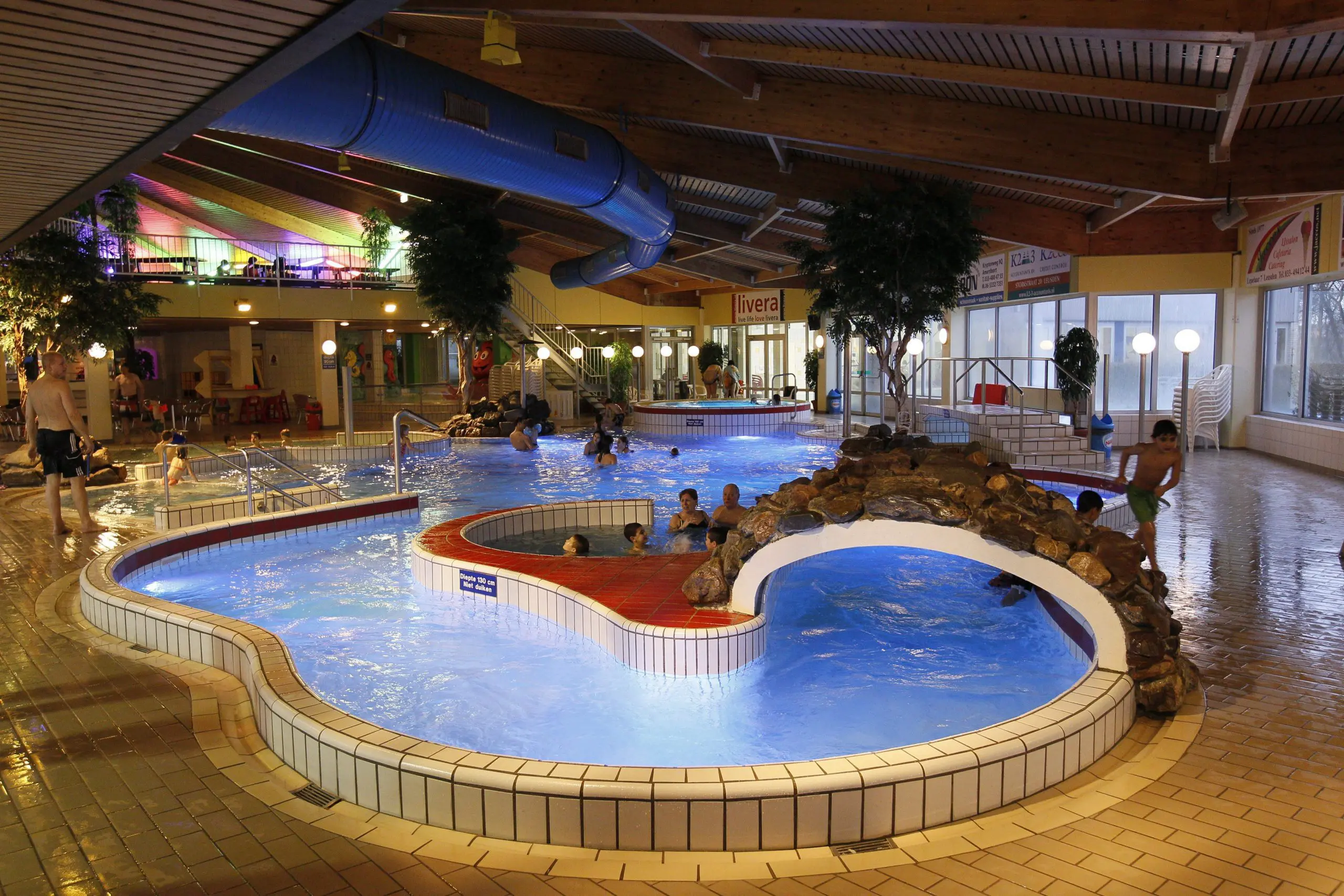 Ons speelse recreatiebad, met onder meer een stroomversnelling, een draaikolk, een bubbelbad en massage ligbanken heeft een gemiddelde watertemperatuur van 31 graden. Zet een snelle tijd neer op onze spectaculaire waterglijbaan! En voor de allerkleinsten hebben wij een apart peuter- kleutergedeelte met een Octopus glijbaantje. De glijbaan is alleen open op vrijdagavond tijdens discozwemmen en op zaterdag en zondag. Ons buitenbad is gesloten.