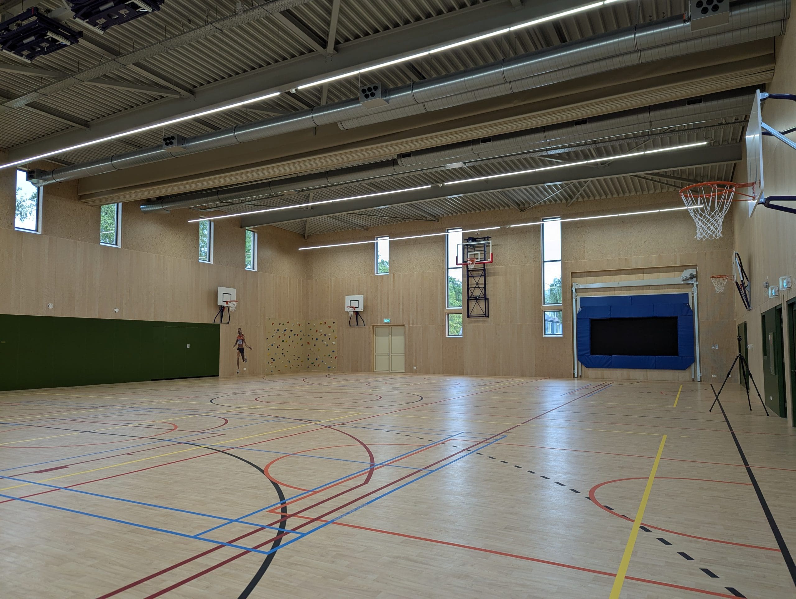- Duurzaam en biobased: de sportzaal is circulair gebouwd met onderdelen van de vorige gymzaal en diverse natuurlijke of herwonnen materialen. Nestkasten zorgen voor vogels en vleermuizen. Het zogenoemde sedumdak vergroot de biodiversiteit en de waterberging. Daarnaast vormt dit een natuurlijke, isolerende buffer tegen ‘hittestress’.