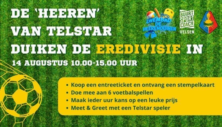 De Heeren van Telstar duiken de Eredivisie in! Doe mee met 6 leuke onderdelen in het buitenbad en op de ligweide en maak ieder uur kans op een prijs!